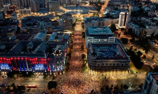 Dhjetëra mijëra qytetarë në kryeqytetin e Serbisë, Beograd, morën pjesë më 1 shtator në një marshim përkujtimor gjatë një proteste kundër qeverisë, të thirrur nga nxënësit e shkollave të mesme, në kuadër të një bllokade në ditën e parë të vitit shkollor.
