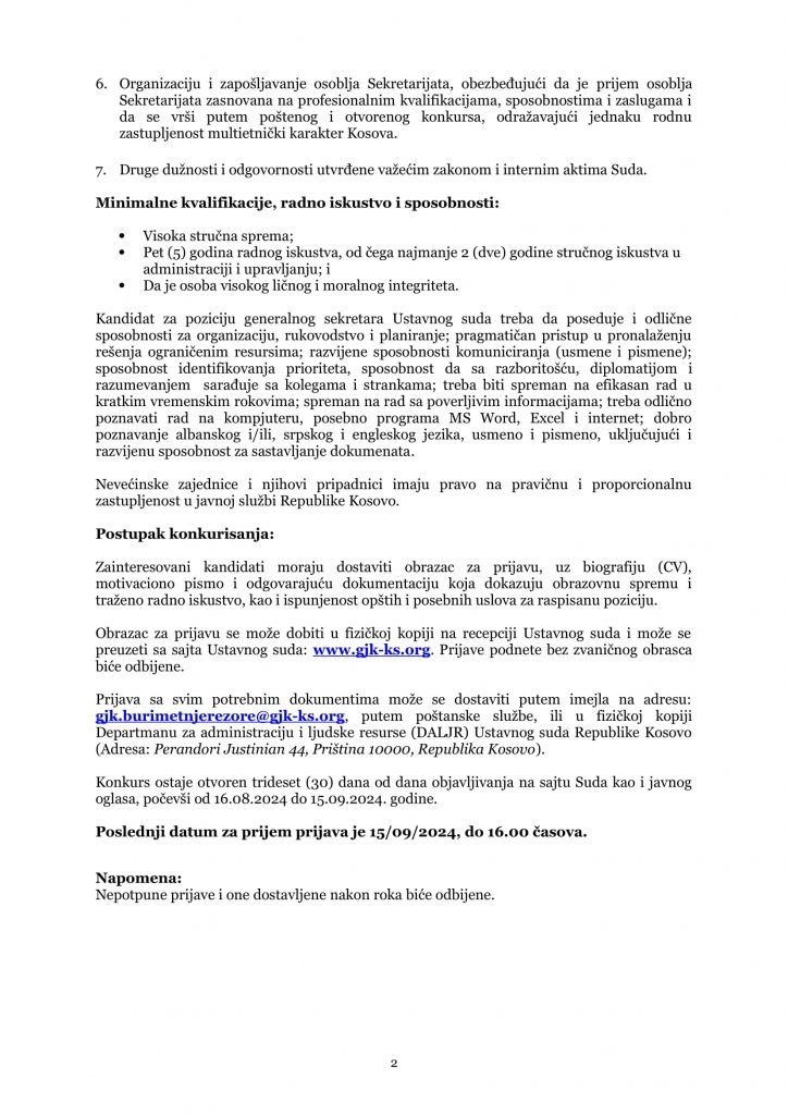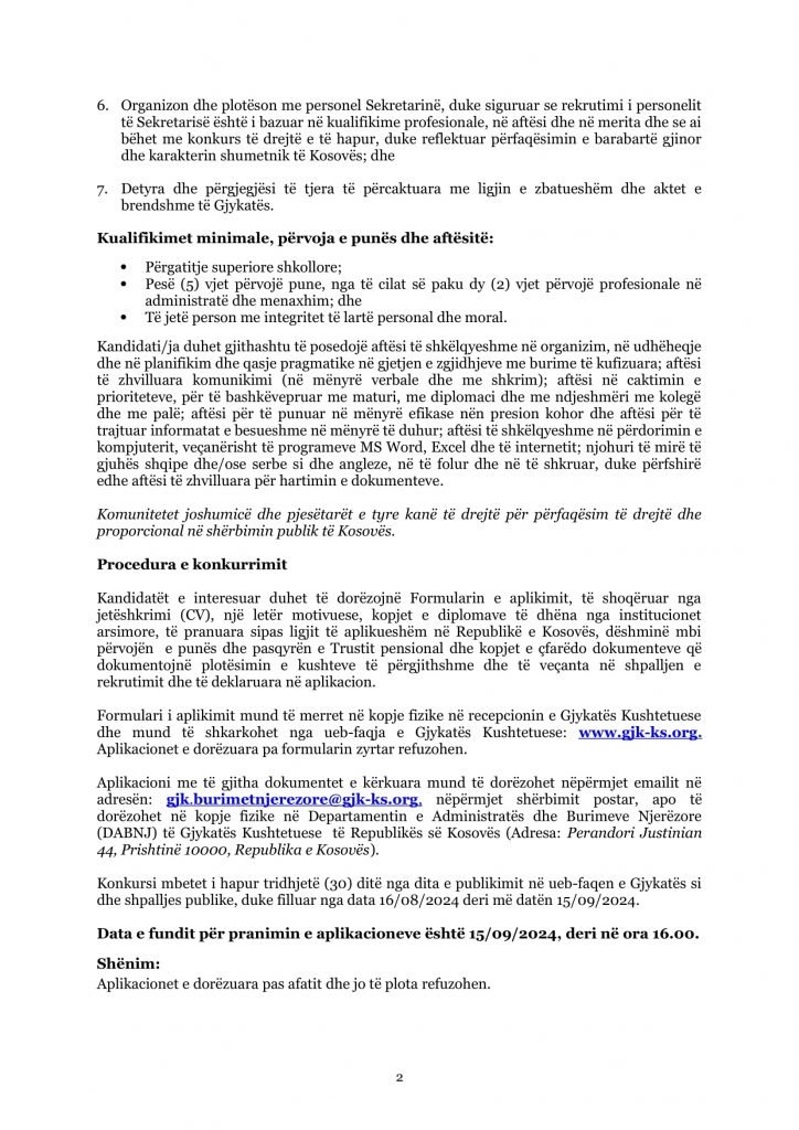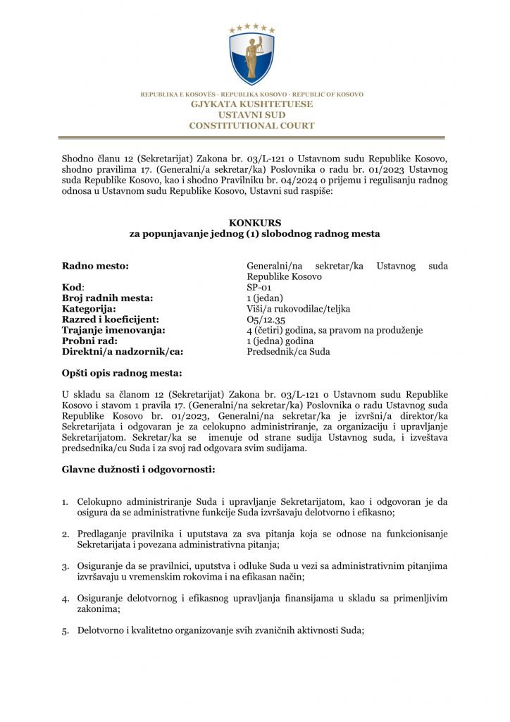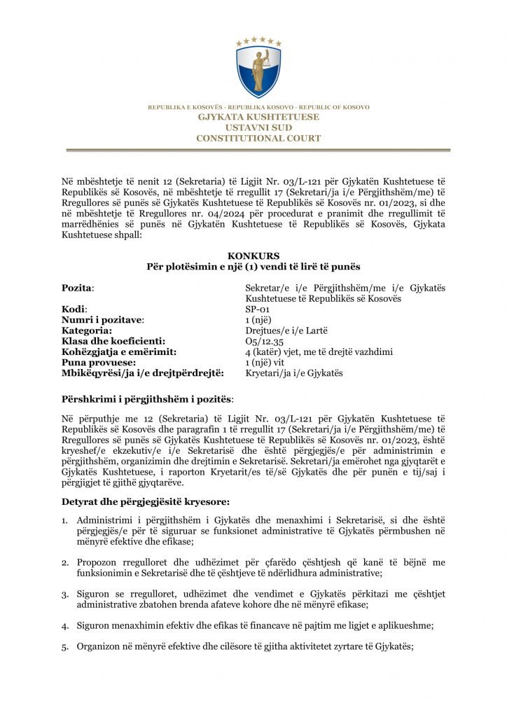 HomePublikime/KonkurseGjykata Kushtetuese e Republikës së Kosovës-Konkurs-Sekretar i Përgjithshëm i Gjykatës Kushtetuese... Publikime/Konkurse Gjykata Kushtetuese e Republikës së Kosovës-Konkurs-Sekretar i Përgjithshëm i Gjykatës Kushtetuese të Republikës së Kosovës. By Bota Sot e Re August 16, 2024, 7:00 0 242 Share FacebookTwitterPinterestWhatsApp konkurs pdf Share FacebookTwitterPinterestWhatsApp Previous articleShpallje të pavlefshmeNext articleRaportohet për vetaksident në rrugën Gjakovë-Pejë, pamje nga vendi i ngjarjes Bota Sot e Re RELATED ARTICLES Publikime/Konkurse Shpallje të pavlefshme February 13, 2026, 23:00 Publikime/Konkurse Shpallje të pavlefshme February 12, 2026, 20:33 Publikime/Konkurse Shpallje të pavlefshme February 12, 2026, 10:03 - Advertisment - Most Popular Vuçiq ngre alarm në Mynih: Jemi të rrezikuar nga aleanca Kosovë, Shqipëri dhe Kroaci, do të rrisim investimet në mbrojtje February 13, 2026, 23:03 Shpallje të pavlefshme February 13, 2026, 23:00 Shpallje të pavlefshme February 12, 2026, 20:33 Shpallje të pavlefshme February 12, 2026, 10:03 Load more Recent Comments
