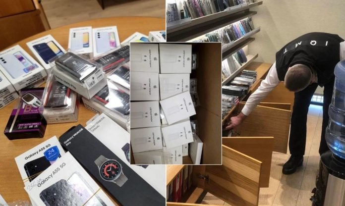 Në njoftim bëhet e ditur se gjatë këtij aksioni janë sekuestruar: 35 telefona të mençur, 2 orë të mençura, 321 mbushës për telefona dhe 8 kabllo për telefona