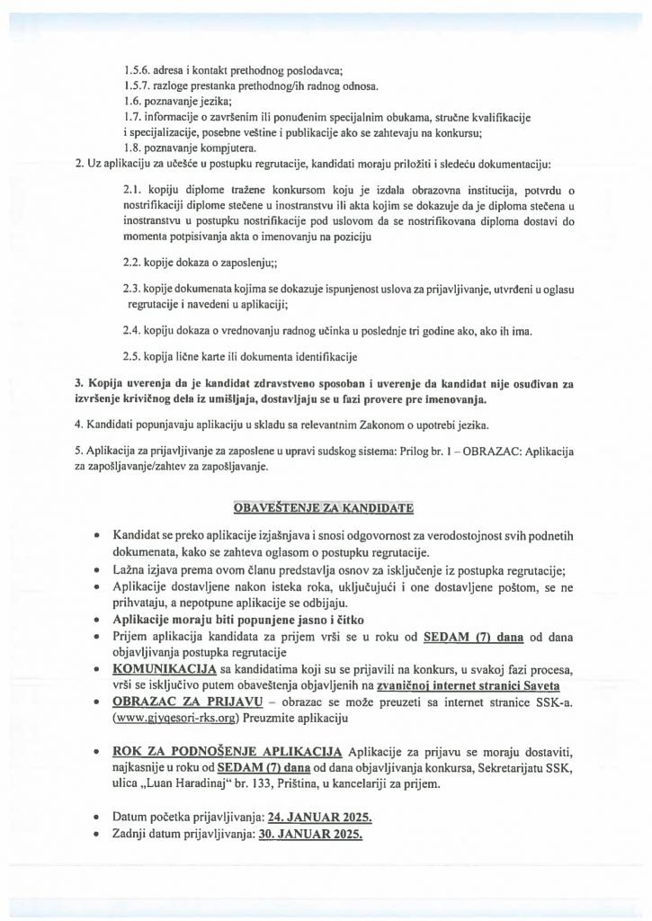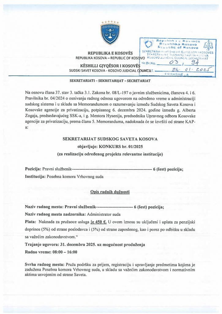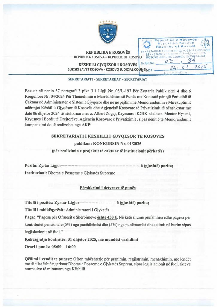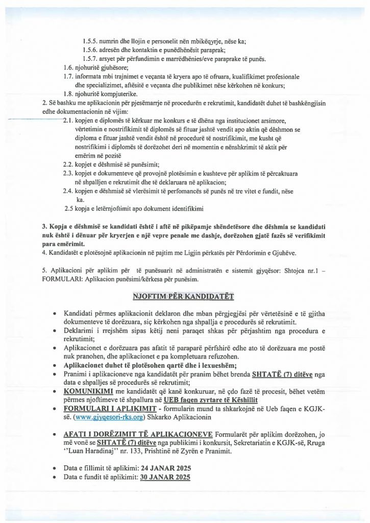 HomePublikime/KonkurseKëshilli Gjyqësor i Kosovës-Konkurs Publikime/Konkurse Këshilli Gjyqësor i Kosovës-Konkurs By Bota Sot e Re January 24, 2025, 20:43 0 221 Share FacebookTwitterPinterestWhatsApp KONKURS PDF Share FacebookTwitterPinterestWhatsApp Previous articleShpallje të pavlefshmeNext articleShpallje të pavlefshme Bota Sot e Re RELATED ARTICLES Publikime/Konkurse Shpallje të pavlefshme April 23, 2026, 21:43 Publikime/Konkurse Njoftim – Mbyllje Biznesi”Jusuf Dekor”Sh.p.k April 22, 2026, 19:03 Publikime/Konkurse Shpallje të pavlefshme April 22, 2026, 18:55 - Advertisment - Most Popular DASH falënderon Kosovën që e shpalli organizatë terroriste IRGC-në April 24, 2026, 11:41 Kurti citon deklaratën e Engel në Kuvend: Dua ta shoh Kosovën të njohur nga secili shtet në botë, dua ta shoh Kosovën në NATO April 24, 2026, 11:39 Kuvendi mblidhet në seancë solemne për kongresmenin Eliot Engel, mban një minutë heshtje April 24, 2026, 11:36 Policia po i heton dy raste të vdekjeve, një në Prizren e një në Mitrovicë të Veriut April 24, 2026, 9:25 Load more Recent Comments