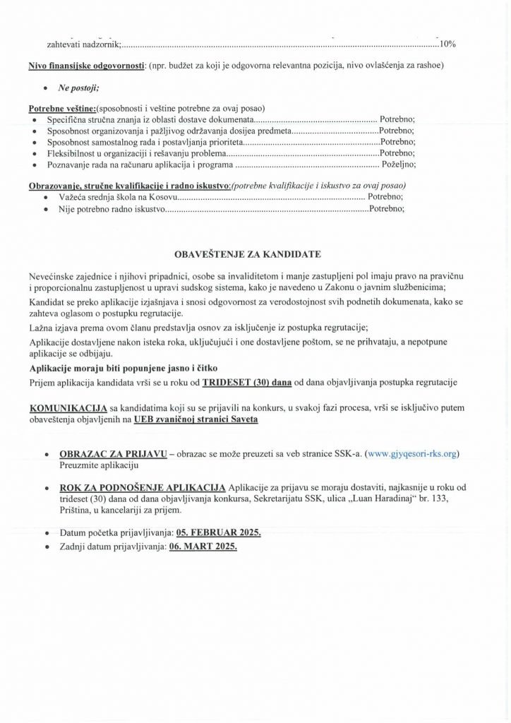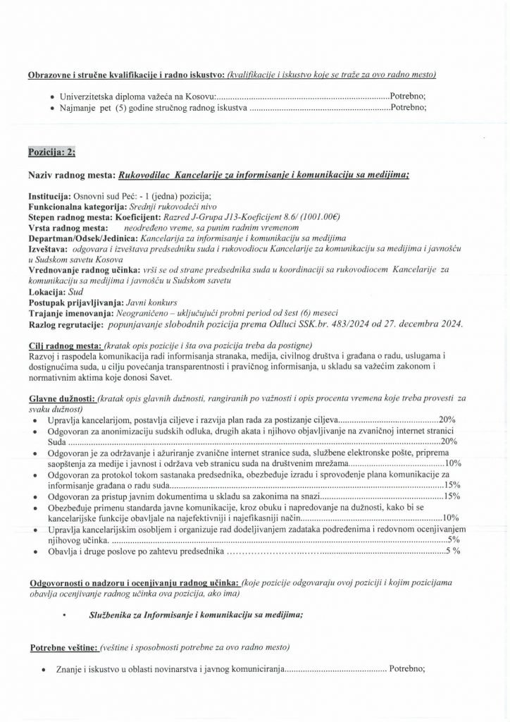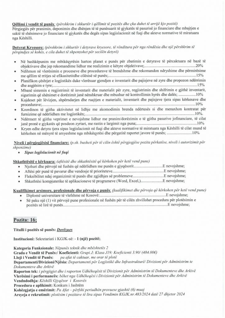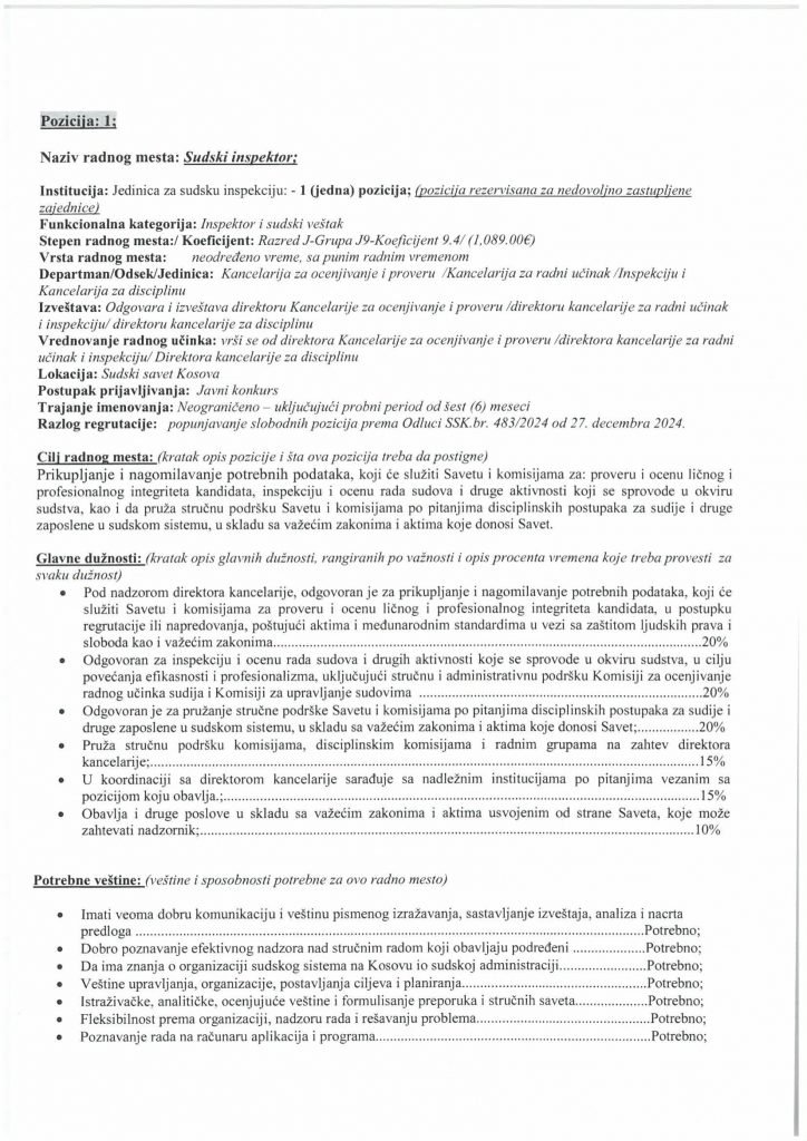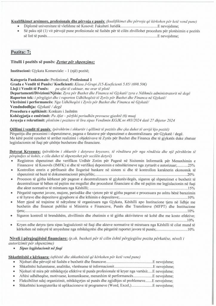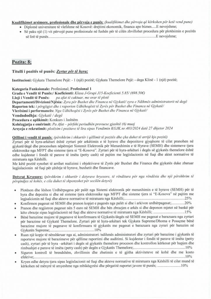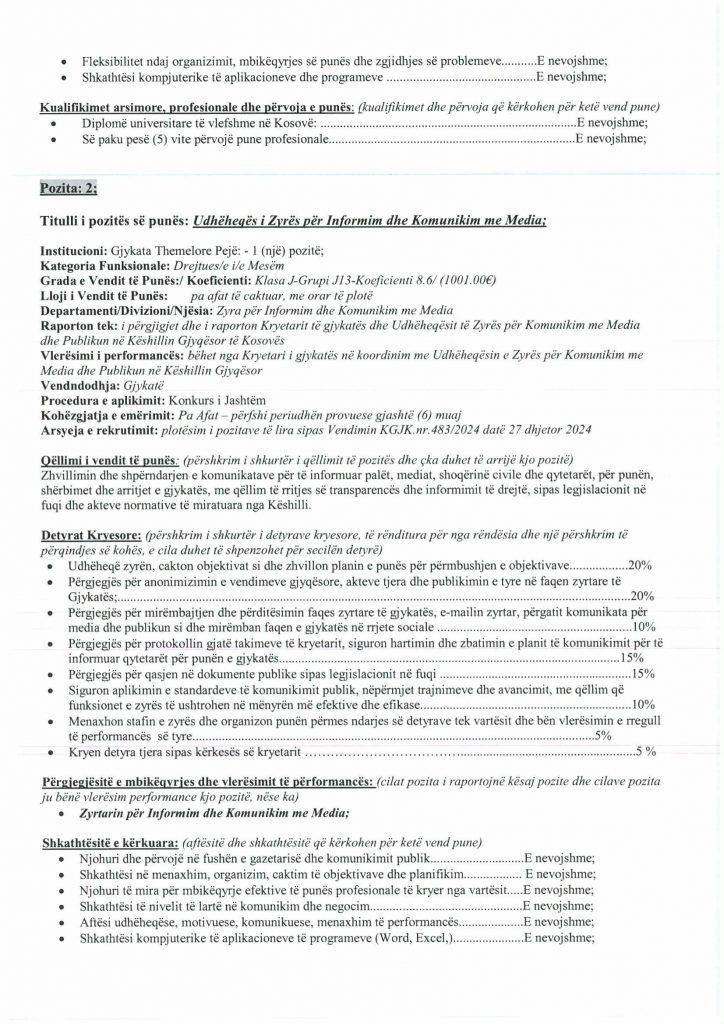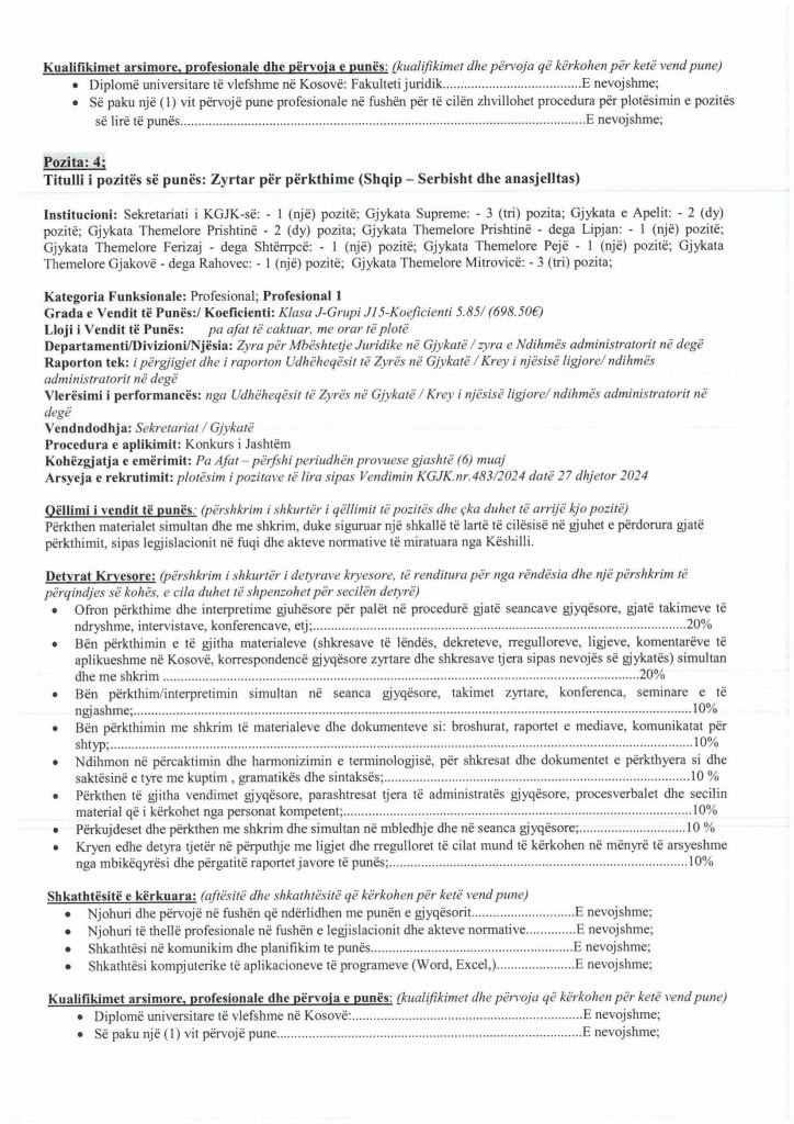 HomePublikime/KonkurseKëshilli Gjyqësor i Kosovës-Konkurs i Jashtëm Publikime/Konkurse Këshilli Gjyqësor i Kosovës-Konkurs i Jashtëm By Bota Sot e Re February 5, 2025, 14:00 0 334 Share FacebookTwitterPinterestWhatsApp Faqja PDF 1 Faqja PDF 2 Faqja PDF 3 Faqja PDF 4 Faqja PDF 5 Faqja PDF 6 Faqja PDF 7 Faqja PDF 8 Faqja PDF 9 Faqja PDF 10 Faqja PDF 11 Share FacebookTwitterPinterestWhatsApp Previous article“Kjo është toka jonë, nuk mund të jetojmë diku tjetër”, palestinezët në Gaza kundërshtojnë planin e TrumpitNext articlePrishtina njofton qytetarët: Faturat e Ndërmarrjes ‘‘Pastrimi’’ nga 1 janari, s’jeni të obliguar t’i paguani Bota Sot e Re RELATED ARTICLES Publikime/Konkurse Shpallje të pavlefshme April 23, 2026, 21:43 Publikime/Konkurse Njoftim – Mbyllje Biznesi”Jusuf Dekor”Sh.p.k April 22, 2026, 19:03 Publikime/Konkurse Shpallje të pavlefshme April 22, 2026, 18:55 - Advertisment - Most Popular DASH falënderon Kosovën që e shpalli organizatë terroriste IRGC-në April 24, 2026, 11:41 Kurti citon deklaratën e Engel në Kuvend: Dua ta shoh Kosovën të njohur nga secili shtet në botë, dua ta shoh Kosovën në NATO April 24, 2026, 11:39 Kuvendi mblidhet në seancë solemne për kongresmenin Eliot Engel, mban një minutë heshtje April 24, 2026, 11:36 Policia po i heton dy raste të vdekjeve, një në Prizren e një në Mitrovicë të Veriut April 24, 2026, 9:25 Load more Recent Comments