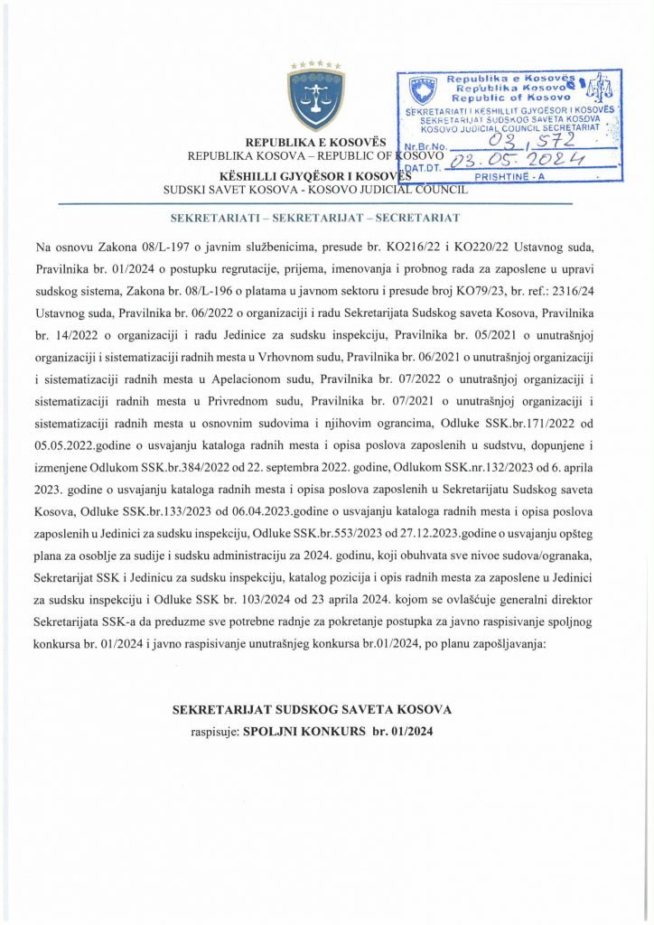 HomePublikime/KonkurseKëshilli Gjyqësor i Kosovës- Konkurs i Jashtëm Publikime/Konkurse Këshilli Gjyqësor i Kosovës- Konkurs i Jashtëm By Bota Sot e Re May 3, 2024, 17:11 0 312 Share FacebookTwitterPinterestWhatsApp PDF faqe 1PDF faqe 2PDF faqe 3PDF faqe 4PDF faqe 5PDF faqe 6PDF faqe 7PDF faqe 8 Share FacebookTwitterPinterestWhatsApp Previous articleKurti zbulon se sa qytetarë janë regjsitruar deri më tani, bën ftesë të shfrytëzohen edhe dy javët e mbeturaNext articleKurti në Ditën Botërore të Lirisë së Shtypit: Jemi të hapur të adresojmë shqetësimet e medias Bota Sot e Re RELATED ARTICLES Publikime/Konkurse Shpallje të pavlefshme December 21, 2025, 20:46 Publikime/Konkurse Shpallje të pavlefshme December 17, 2025, 20:47 Publikime/Konkurse Shpallje të pavlefshme December 16, 2025, 22:23 - Advertisment - Most Popular Ekspertët ukrainas: Serbia në Kosovë po bën veprime si të Rusisë December 22, 2025, 8:34 Shefja e inteligjencës amerikane: Rusia nuk është e aftë të pushtojë Ukrainën, e lëre më Evropën December 22, 2025, 8:32 KOSTT: Konsumi i rrymës ka tejkaluar rekordet e mëparshme, apel për kursim December 22, 2025, 8:31 Sot seanca gjyqësore ndaj të akuzuarve për vrasjen e Liridona Ademajt December 22, 2025, 8:30 Load more Recent Comments