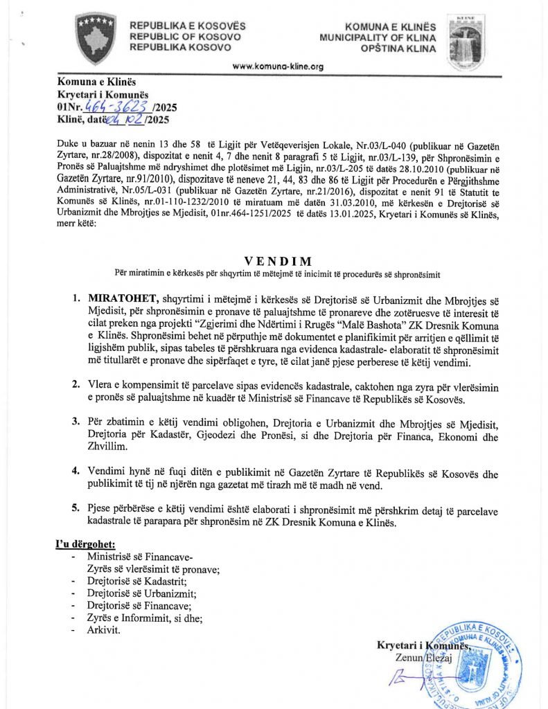 HomePublikime/KonkurseKomuna e Klinës-Vendim Publikime/Konkurse Komuna e Klinës-Vendim By Bota Sot e Re February 4, 2025, 14:00 0 251 Share FacebookTwitterPinterestWhatsApp Faqja PDF Share FacebookTwitterPinterestWhatsApp Previous articleIsh deputeti i VV-së: Lëvizja Vetëvendosje po financohet përmes shitjes së rrymësNext articleShpallje të pavlefshme Bota Sot e Re RELATED ARTICLES Publikime/Konkurse Shpallje të pavlefshme April 23, 2026, 21:43 Publikime/Konkurse Njoftim – Mbyllje Biznesi”Jusuf Dekor”Sh.p.k April 22, 2026, 19:03 Publikime/Konkurse Shpallje të pavlefshme April 22, 2026, 18:55 - Advertisment - Most Popular DASH falënderon Kosovën që e shpalli organizatë terroriste IRGC-në April 24, 2026, 11:41 Kurti citon deklaratën e Engel në Kuvend: Dua ta shoh Kosovën të njohur nga secili shtet në botë, dua ta shoh Kosovën në NATO April 24, 2026, 11:39 Kuvendi mblidhet në seancë solemne për kongresmenin Eliot Engel, mban një minutë heshtje April 24, 2026, 11:36 Policia po i heton dy raste të vdekjeve, një në Prizren e një në Mitrovicë të Veriut April 24, 2026, 9:25 Load more Recent Comments