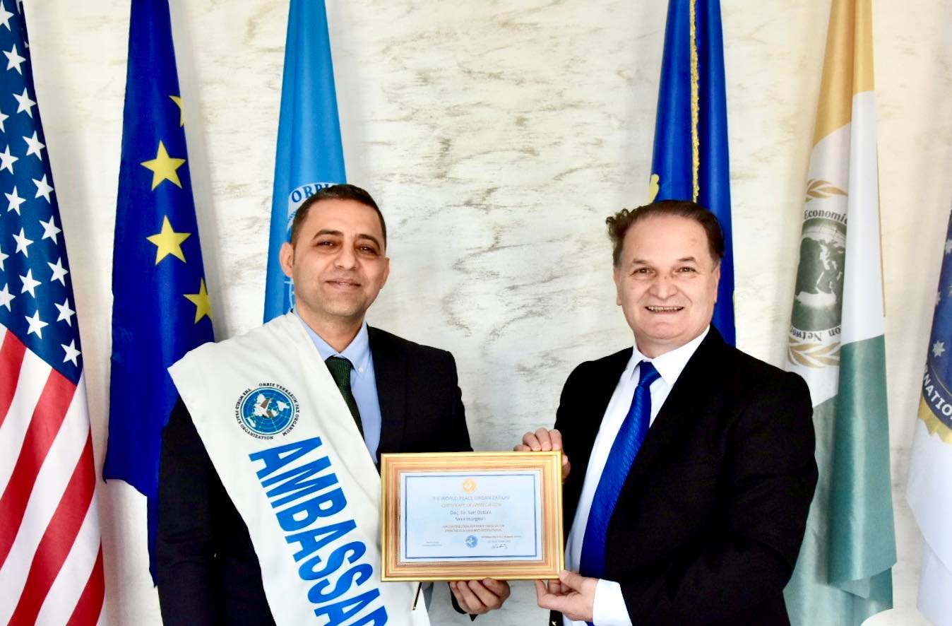 Dr.Rabit Sadiku Zv.President i Organizatës së Paqës Botërore (World Peace Organisation WPO) Evropë sot nderoi me Mirnjohje Neurokirurgun e njohur nga Stambolli, Turqi : Doç. Dr. Sait Öztürk .