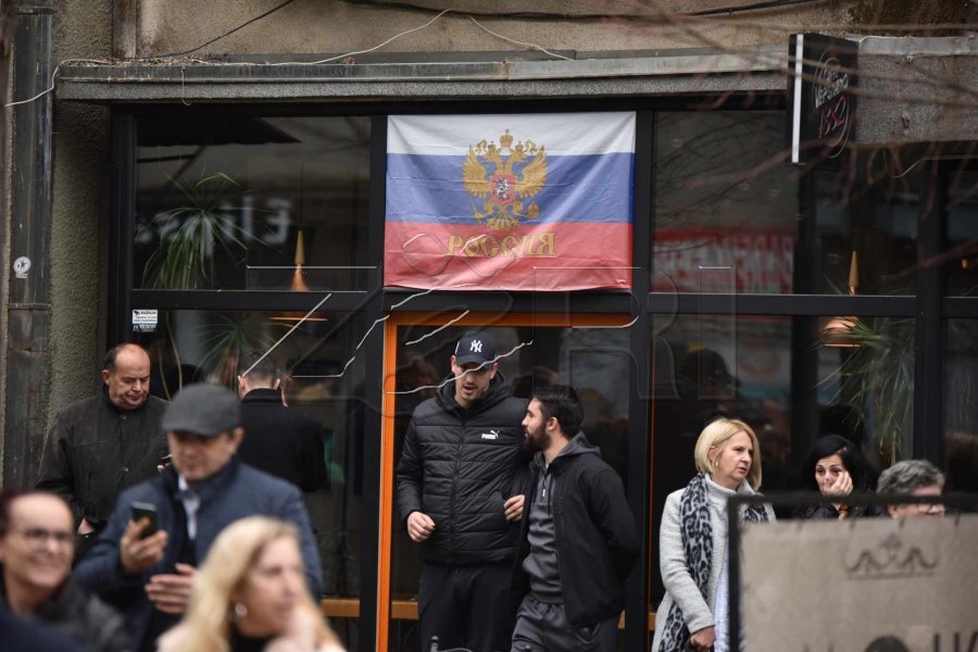 Ajo që vihet re, është edhe një flamur rus vendosur në njërin prej lokaleve, në të cilin shkruan “Rusia”.
