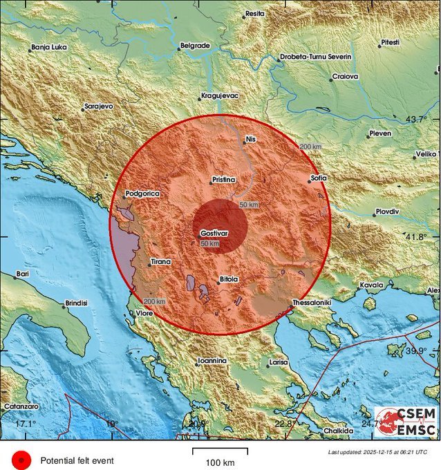 Deri më tani nuk raportohet për dëme materiale apo persona të lënduar, ndërsa lëkundja është ndjerë lehtë nga banorët e zonës përreth. /Telegrafi/